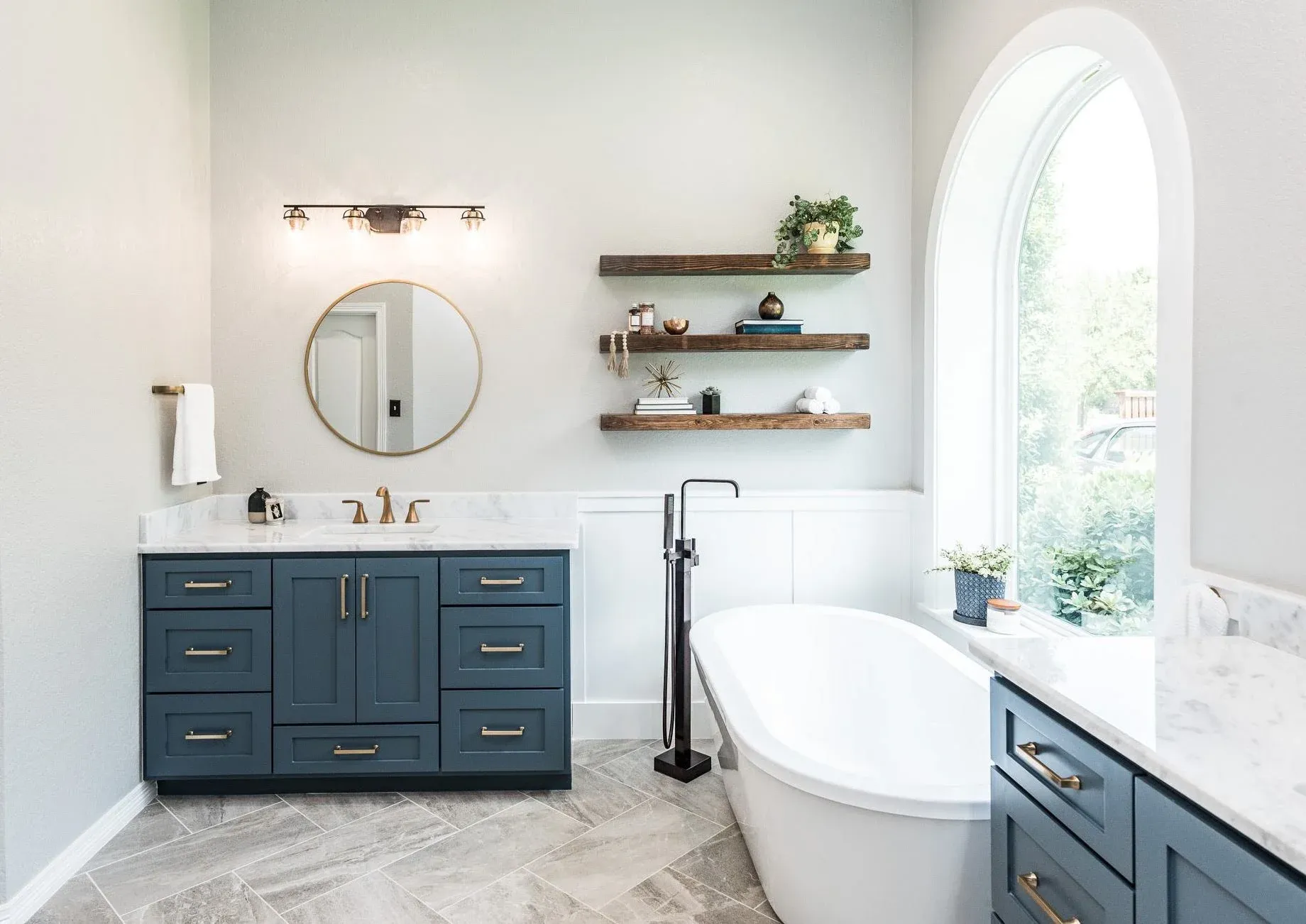 If you’re looking for a sheek, timeless and lux look, it’s tough to beat real marble. The polished sheen gives a crisp look and modern flare that makes the finishes and fixtures pop.