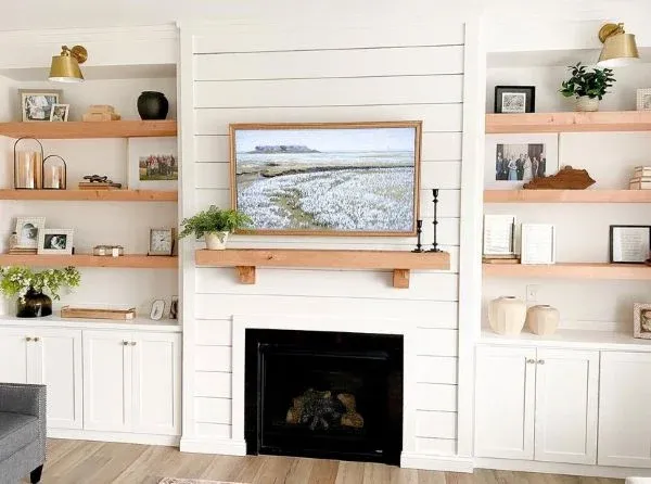 Add a Beautiful Mantel: It’s a simple and budget-friendly idea, but adding a distinct fireplace mantel can elevate it and give you more shelf space without breaking the bank.